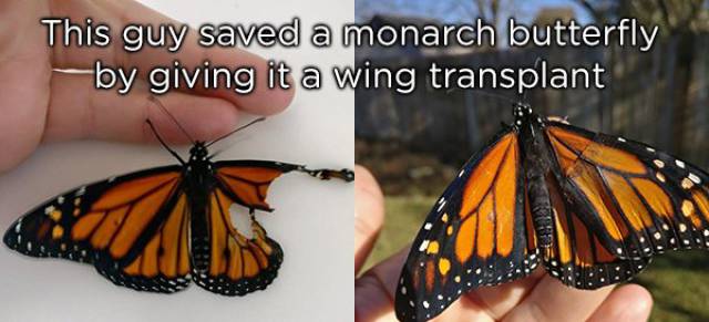 Un homme a pris le soin de faire une greffe d’aile sur ce papillon afin qu’il puisse voler à nouveau.