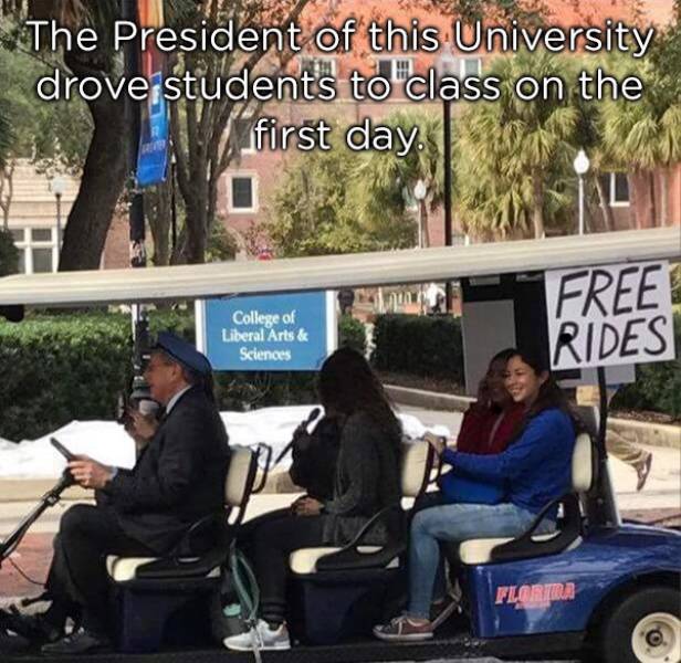 Quoi de plus motivant pour une première journée d’étude que d’être déposée à la salle par une voiturette conduit par le Président de l’université.
