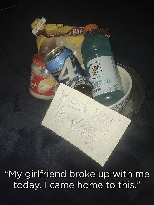 Il vient de rompre avec sa copine. Voici ce que sa sœur lui a réservé à la maison afin de le réconforter.