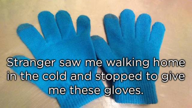 En le voyant marché dans le froid, un inconnu s’est arrêté pour lui offrir ce gant. Quel geste exemplaire.