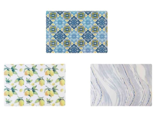 Venez faire votre choix entre cette nappe aux motifs de citrons, celle à imprimé ornemental ou avec une finition « effet marbre gris ». Faciles à vivre et à entretenir, un simple coup de chiffon humide suffit à les nettoyer.