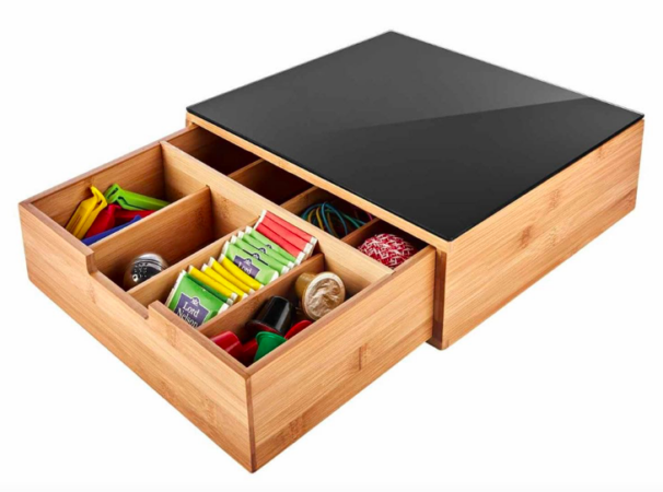 C’est un autre ensemble qui comprend un tiroir avec butée d’ouverture qui comporte huit compartiments. Ces derniers sont parfaits si vous avez l’intention de ranger de petits objets. Ils peuvent aussi servir de rangement pour sachets de thé.