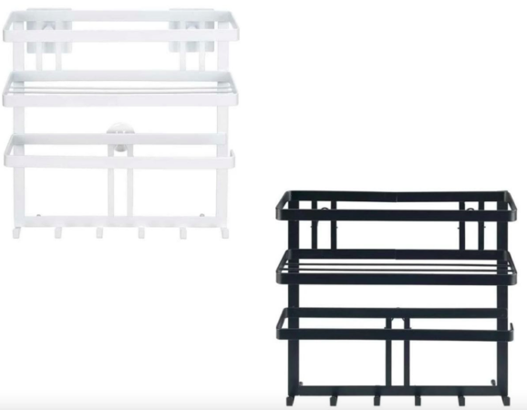Dans un même ordre d’idées, la firme propose un organisateur de cuisine et de rangement à poser contre le mur. Il a des mesures équivalentes à 33 x 30 x 9 cm et pèse 985 grammes.