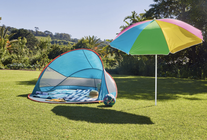 On valide aussi ce parasol Crivit au prix plus modeste de 9,99 €. Ce modèle tout simple nous enchante avec ces jolies couleurs qui font souffler un petit air de vacances dès que celui-ci est déployé.