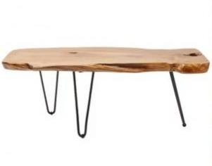 Elle possède un plateau en teck massif, des courbes brutes ainsi que des pieds en métal noir qui donnent une touche industrielle pour casser le côté trop simple du produit. Avec un design élégant, c’est une table qui fait un vrai carton.