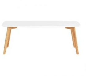 Elle possède des pieds en plastique robuste, également blancs. Elle mesure 38-50 cm de hauteur, 100 cm de largeur et 68 cm de profondeur. C’est une table qui supporte un poids maximum de 30 kg. Maisons du monde a fait une remise de 10 % sur cette table. Vous pourrez l’obtenir pour 134 euros au lieu de 149 euros.