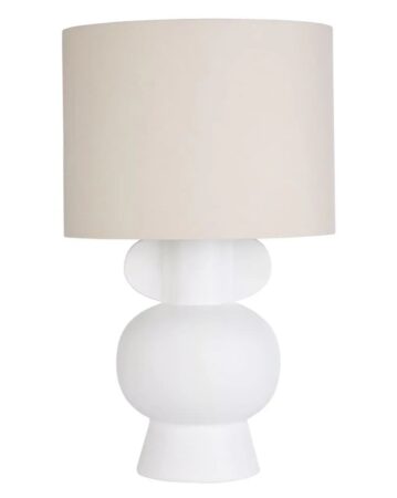 Il s’agit d’une sublime lampe réalisée avec un pied cylindrique en grès. Comme dit précédemment, vous pourrez la trouver en 5 coloris. À savoir : blanc, jaune, moutarde, noir et bleu clair, dans tous les cas associé à un abat-jour en textile de couleur crème.