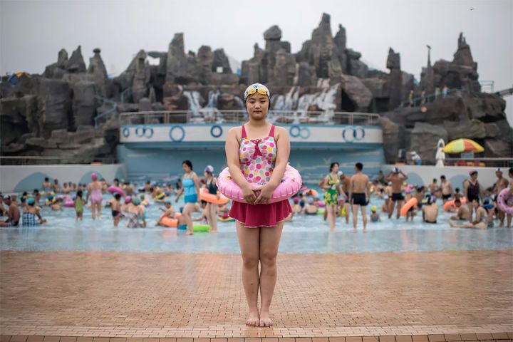 Voilà une photo d’une fille nageant dans le parc aquatique de Munsu à Pyongyang.
