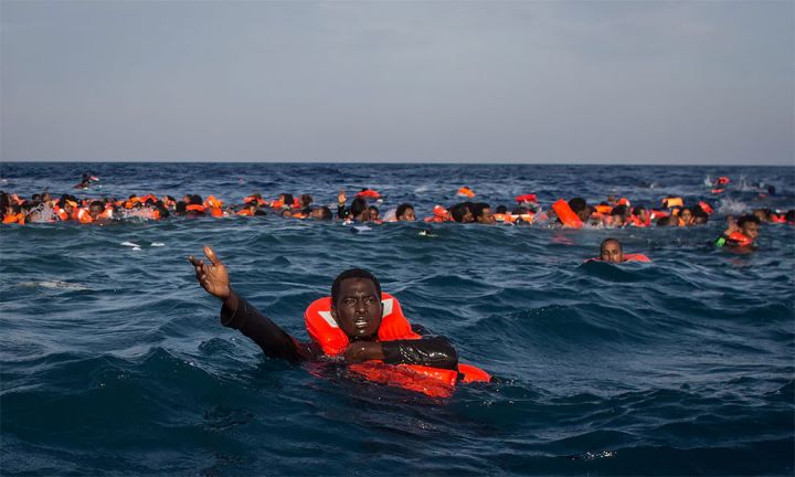 Et comme chaque année, les réfugiés continuent de traverser l’océan pour fuir la misère, la guerre et à la recherche d’un monde meilleur semble-t-il. Ces réfugiés nagent essayant de sauver leur peau sur le large de Lampedusa en Italie, après que leur bateau s’est échoué.