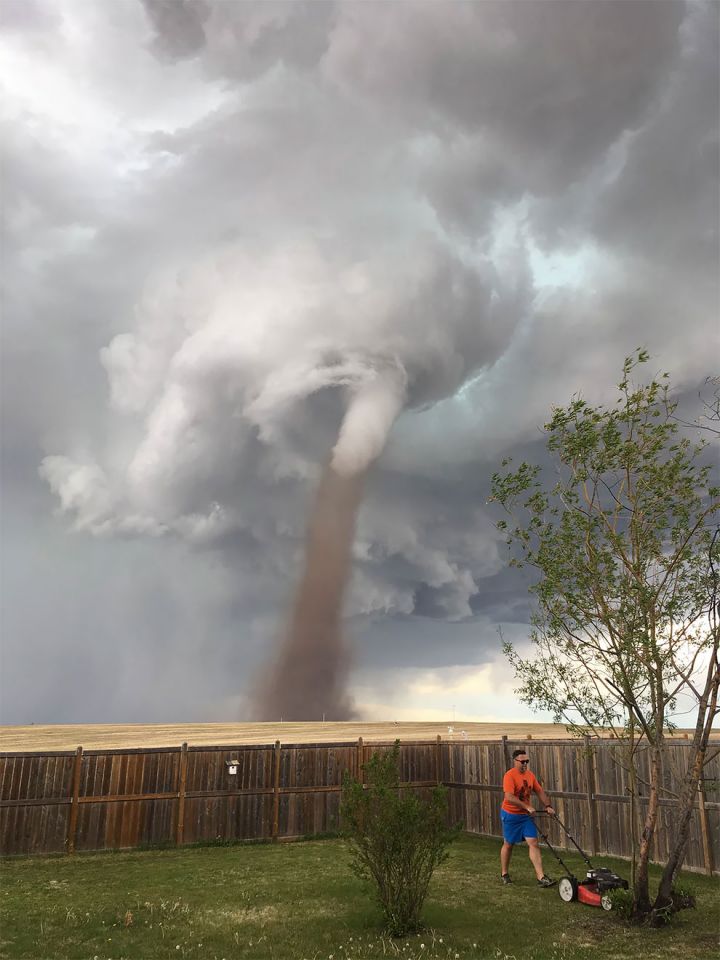 En Alberta au Canada, une tornade sévit, mais cet homme n’a pas l’air de le remarquer.