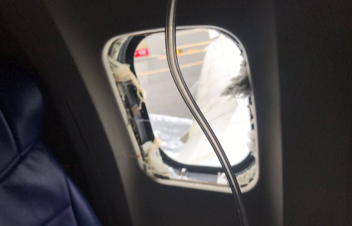 Les photos montrent un trou béant où une fenêtre était sur le 737, et à l’extérieur le capot moteur ouvert comme une canette de soda. Une femme a été partiellement aspirée dans le hublot avant d’être retirée avec l’aide des passagers. Cette mère de famille est décédée de ses blessures. Elle est la seule victime de cet accident.