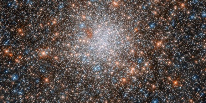 Cette boule d’étoiles scintillante est l’amas globulaire NGC 1898, qui se situe vers le centre du Grand Nuage Magellan, l’un de nos plus proches voisins cosmiques. Le Grand nuage magellanique est une galaxie naine qui héberge une population extrêmement riche d’amas d’étoiles, ce qui en fait un laboratoire idéal pour étudier la formation d’étoiles.