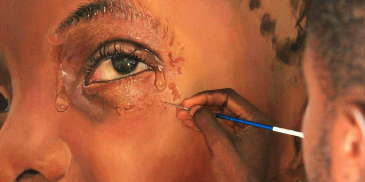 Silas Onoja est né à Benue au Nigeria et a 22 ans. Actuellement il est basé au Nigeria, plus précisément à Abuja. Ce jeune peintre réalise des toiles qui ressemblent beaucoup à des photos et qui ne sont autres que des peintures incroyablement réalistes.