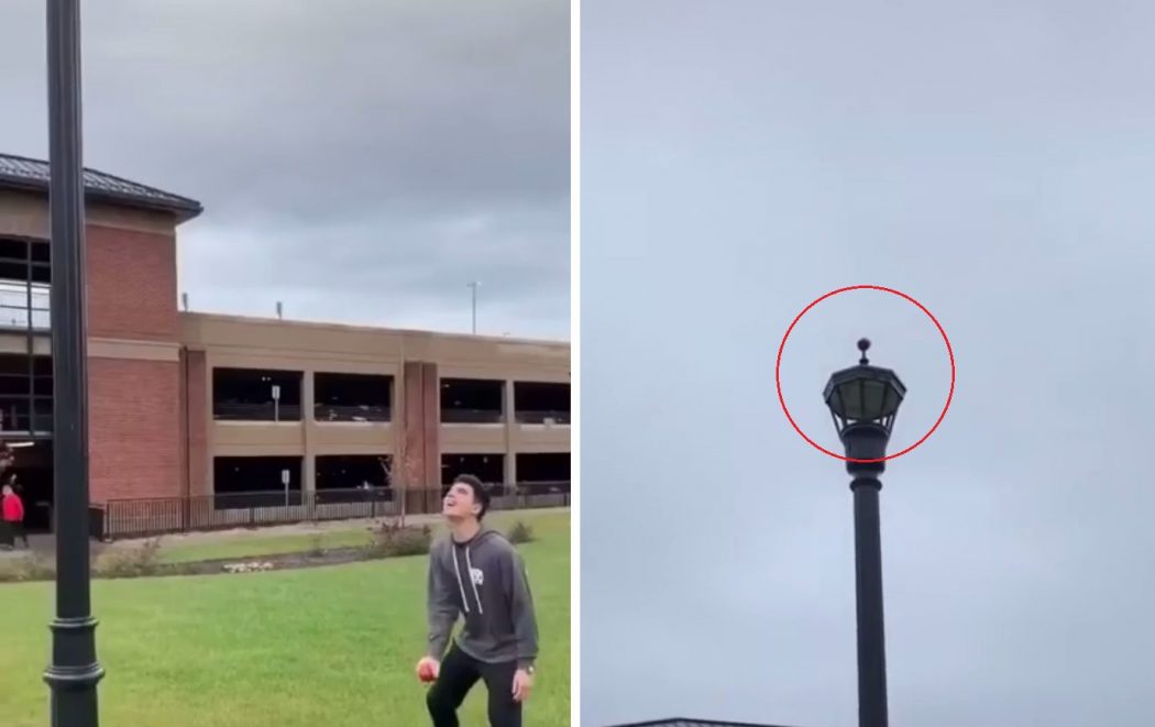 Un groupe d’étudiants a décidé de se défendre entre eux. Le challenge consiste à jeter une pomme en l’air et l’implanter sur la pointe d’un poteau d’éclairage.