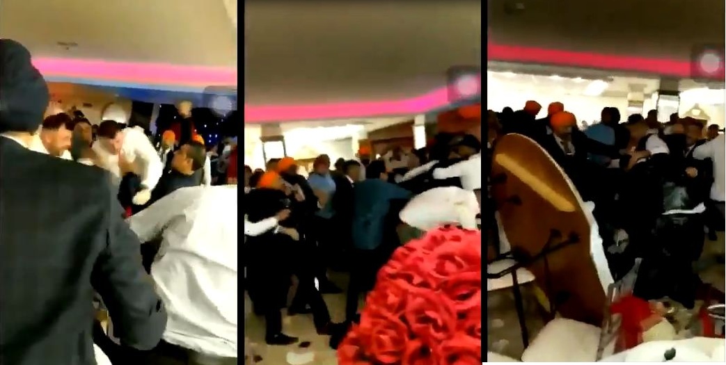 Un clip montre plusieurs invitées de mariage en train de crier et de se battre violemment. Dans la vidéo, plusieurs invités se dirigent vers deux hommes vêtus de costumes bleus et bordeaux. Le groupe commence à frapper de poing les deux hommes qui se sont écrasés de manière dramatique sur la table. Un des invités de sexe masculin tente de tirer et de tirer l’homme en costume bleu afin qu’il puisse le frapper davantage. La scène a été filmée à l’aide d’un téléphone.