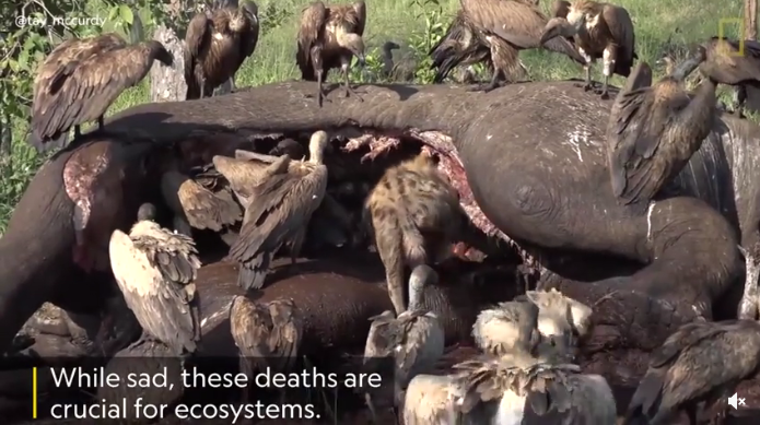 National Geographic a enregistré les étapes impressionnantes d’un éléphant mourant jusqu’à la consommation complète de son corps par les animaux sauvages.