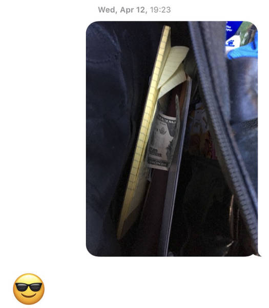 Le sac d’une femme c’est comme la caverne d’Ali Baba. Mais un petit billet en plus ça ne fait pas de mal au portefeuille surtout quand ça vient d’un papa.