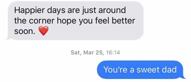 Après une journée difficile ça fait toujours réconfortant de recevoir un petit mot mignon d’un père.