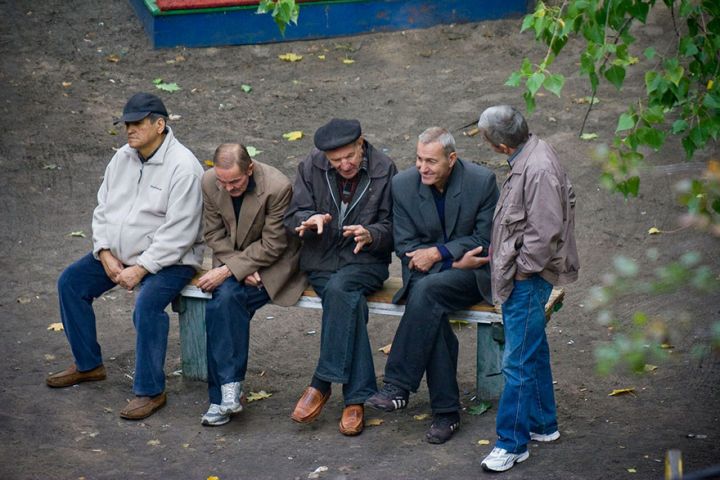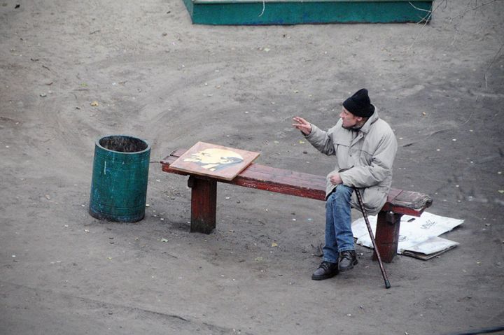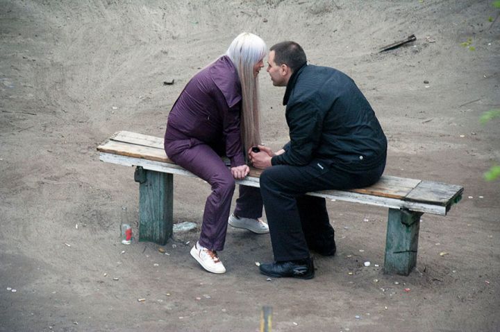 Kotenko a commencé à capturer la vie sur le banc en 2007 ou 2008. Dans la banlieue de Kiev, les amis se rassemblent, les amants se rencontrent et les buveurs boivent. Alors que les visages changent, le banc du parc reste le même.