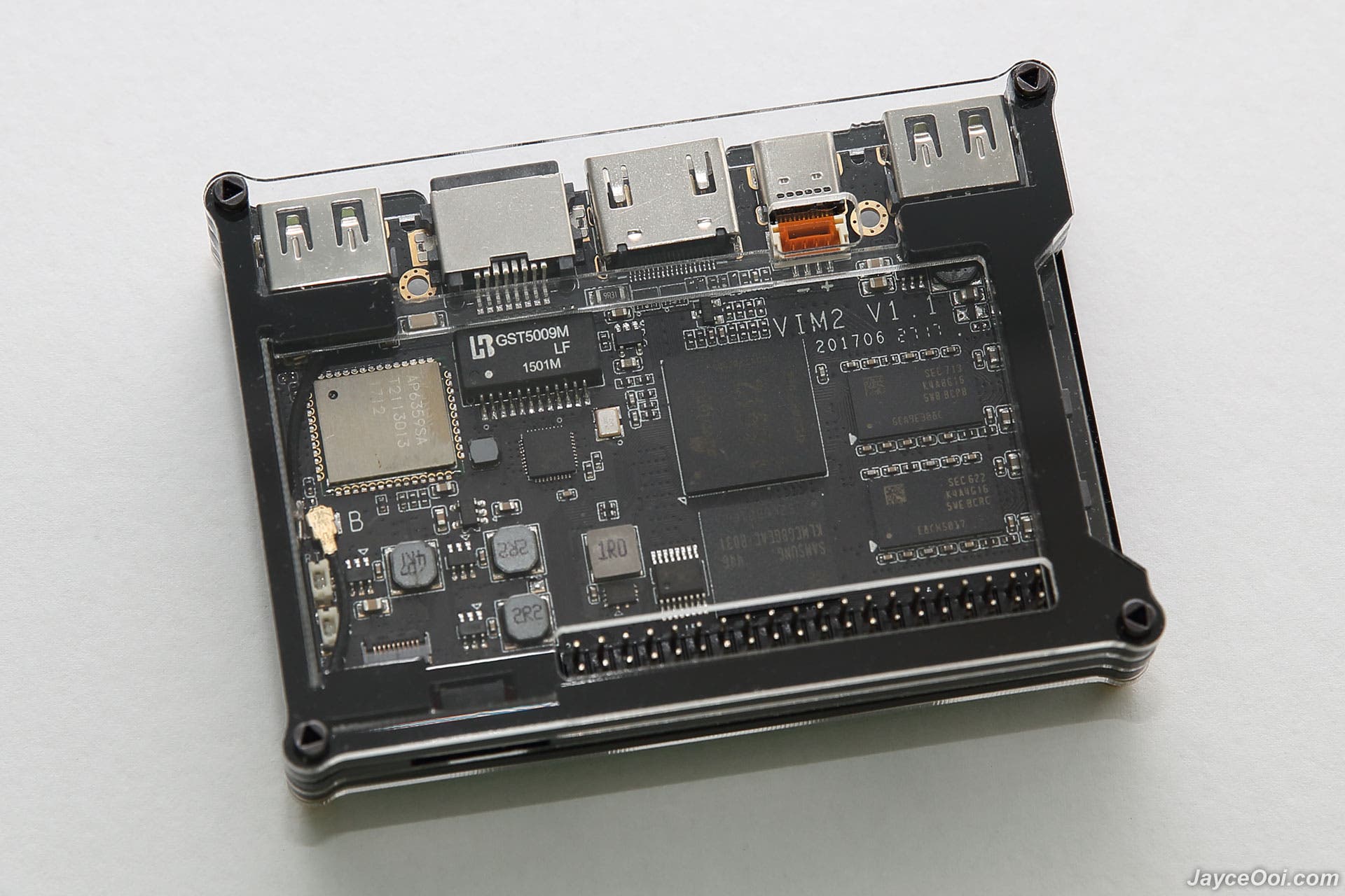 Son processeur ouvre l’utilisation d’Android qui est déjà pré-installé sur la TV box. Le tout est soutenu par 3G de RAM DDR4 et 64 Go de ROM. cette seconde version de la Khadas VIM possède une sortie HDMI et un port USB 2.0 de type- ainsi qu’un port GPIO 40 broches. Le boîtier est compatible avec UBUNTU, Linux et Docker.