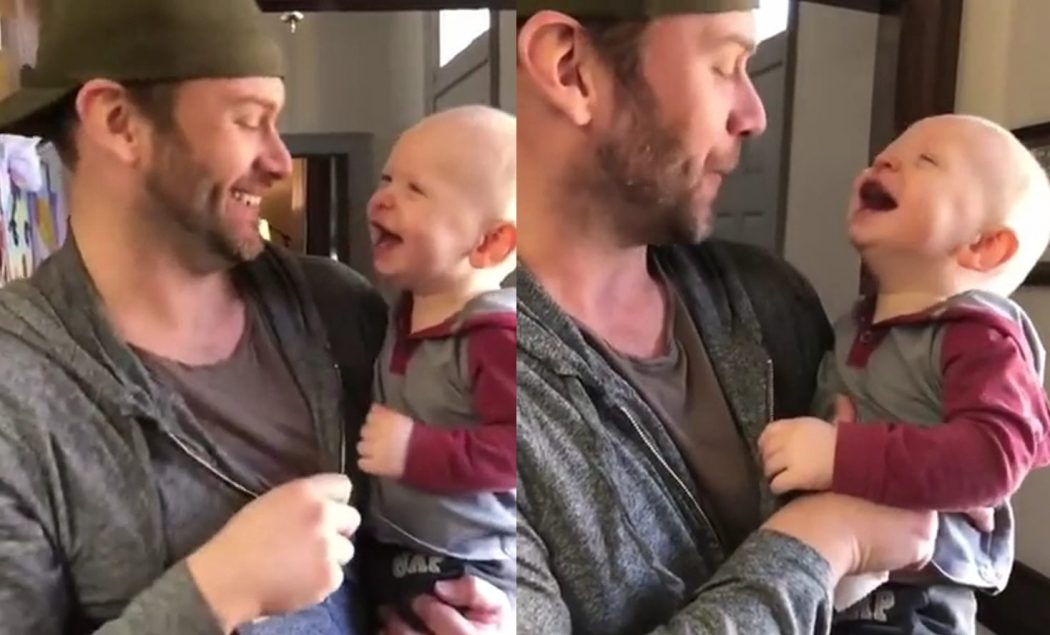 Le papa commence par faire le beatbox avec sa bouche, ce qui amuse son adorable bébé qui commence à rire sans arrêt. Puis on voit le bébé qui essaye de son tour d’imiter son papa. C’est super mignon !