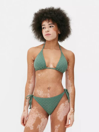 Ce modèle se compose de deux pièces assorties à shopper en plusieurs coloris chez Primark. La culotte se noue sur le côté, tandis que le haut se lasse dans le dos.