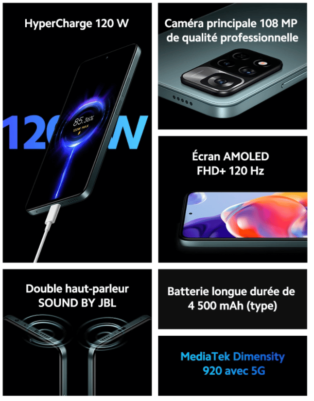 ✅ 120W Xiaomi HyperCharge (pour charger très rapidement votre smartphone)