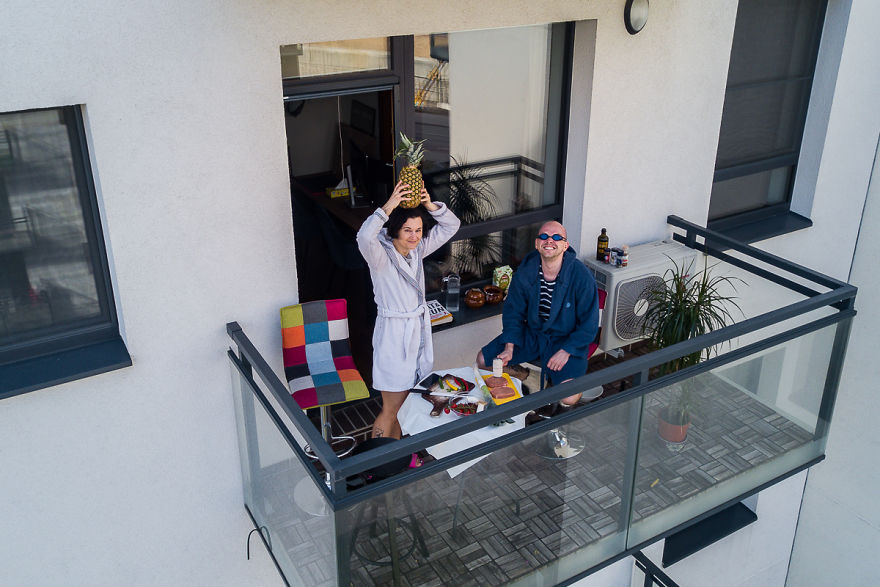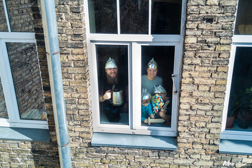 À travers leurs fenêtres ou sur leurs terrasses, ils ont décidé de les photographier et de partager des photos amusantes, pour montrer à quel point tout le monde s’ennuie. C’est l’heure de faire les fous et de faire des choses drôles. La quarantaine peut être drôle.