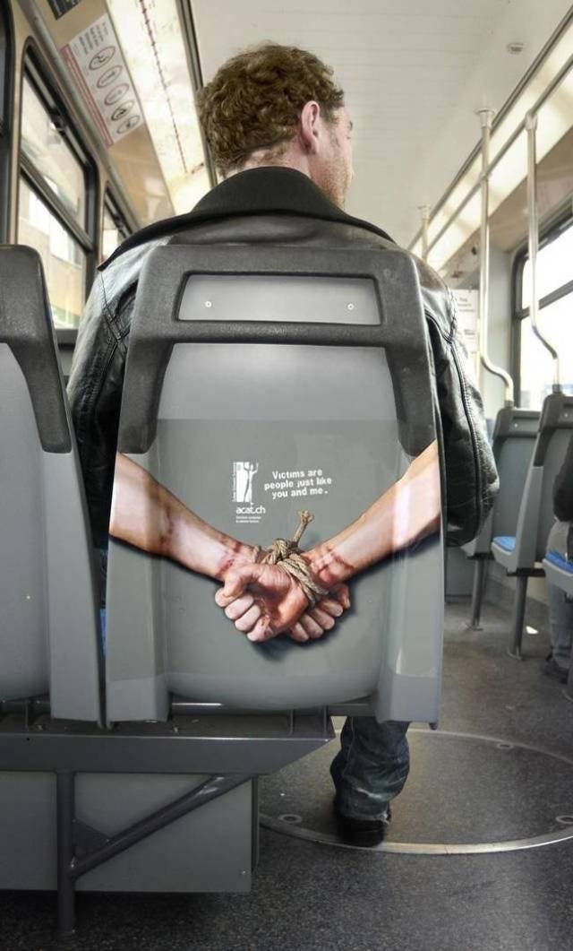 Une bonne idée pour sensibiliser à une grande cause avec cet affichage et son illusion presque parfaite. Une campagne chrétienne pour abolir la torture, “ les victimes sont des personnes comme vous et moi. “