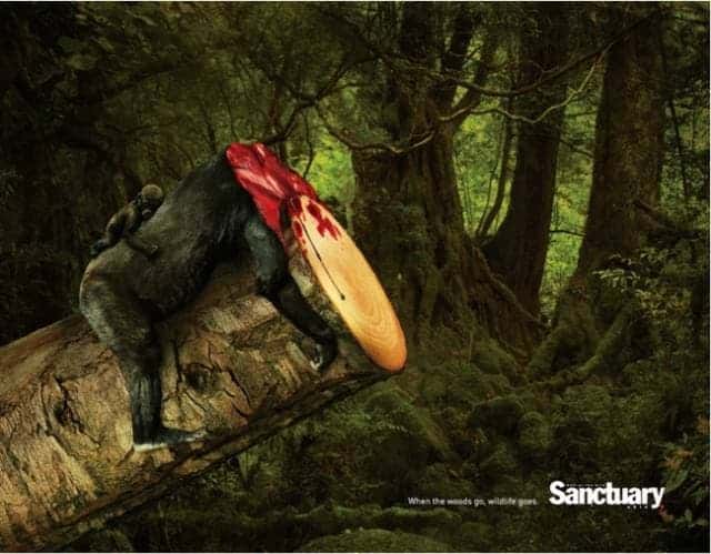 Une campagne réaliste pour lutter contre la déforestation. Des images chocs qui mettent en scène les animaux sauvages, de manière insolite.