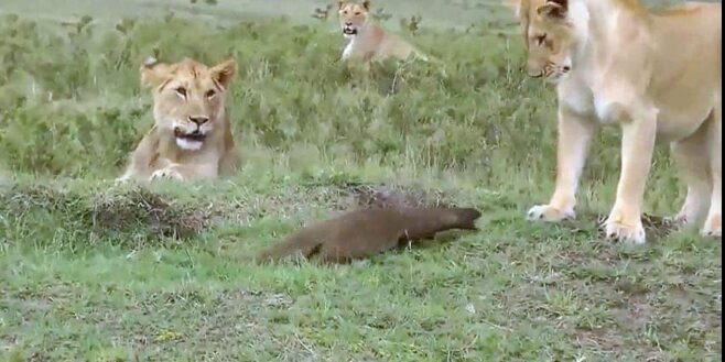 Une mangouste arrive à faire fuir des lionnes affamées qui se promenaient au dessus de sa maison. Elle s’y prend plutôt bien pour les faire fuir !