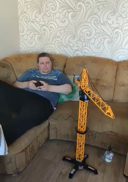 Chacun, peu importe sa profession, est confronté au confinement et les activités du quotidien peuvent manquer cruellement. Chez lui, ce conducteur de grues n’a pas manqué d’imagination pour ne pas rouiller ses mains lorsqu’il reprendra le travail. L’homme n’a pas raté l’occasion pour se faire plaisir, car en restant à la maison difficile de ne pas faire parler sa créativité. Derrière se trouve aussi une pointe de paresse. Avec cette grue jouet, il s’entraîne en rapportant un verre jusqu’à lui.