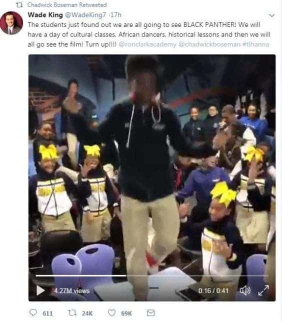 Le héros du film lui-même Chadwick Boseman a retweeté la vidéo des élèves qui n’ont pas caché leur joie.