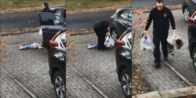 Cette vidéo hilarante montre un papa qui en a assez de son paresseux petit enfant. Ce dernier, étendu sur terre, refuse de bouger!