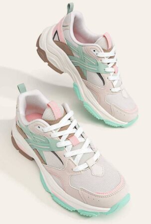 Stradivarius n’échappe pas à la tendance et propose régulièrement des baskets dans ses catalogues. Cet été, la griffe a décidé de nous impressionner avec un modèle ultra tendance aux jolies nuances colorées !
