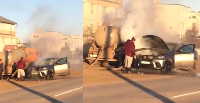 Alors qu’il roulait sur l’autoroute près de la ville de Samara dans sa BMW X6 SUV, le propriétaire s’est retrouvé avec un moteur en surchauffe. Il avait déjà appelé les pompiers ainsi que les secours. Mais en les attendant, le feu commençait à s’étendre sous le capot de son SUV allemand.