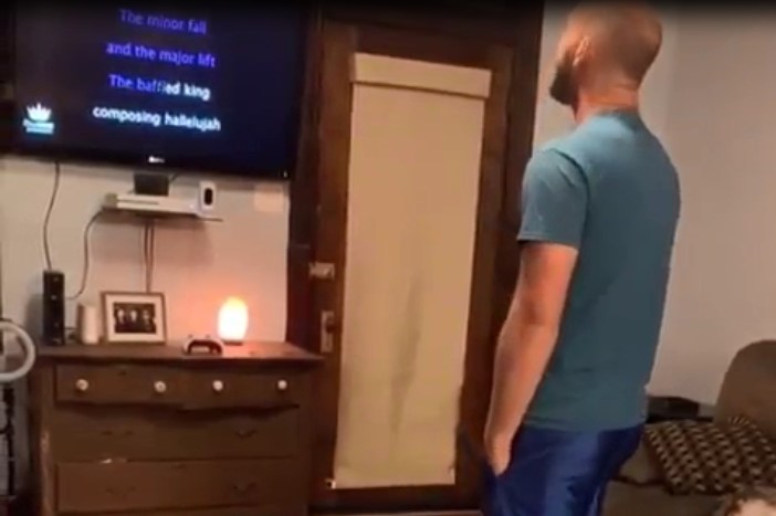 Le karaoké de cet homme s’est passé agréablement jusqu’à un certain moment de panique. En effet, contrairement à beaucoup d’entre nous, il s’en sort plutôt bien au niveau vocal. Si bien qu’il a pu pousser un cri de frayeur quand il a été surpris par sa femme le filmant par derrière. Visiblement, il ne s’y attendait pas.