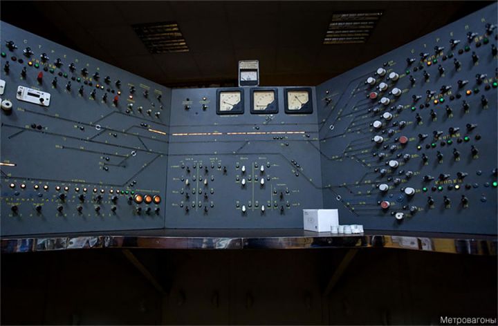 À l’époque où l’URSS se tournait vers un avenir brillant et glorieux, ces pièces représentaient le meilleur des progrès technologiques. Un style austère des panneaux de contrôle utilisés en URSS pour piloter les centrales électriques et autres installations stratégiques.