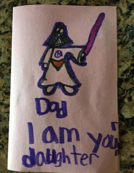 Avec une carte d’anniversaire où Dark vador est le héros, ce papa ne risque pas d’oublier qui est sa fille.
