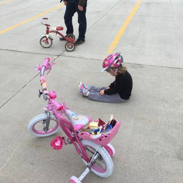 Pas facile pour cette petite fille se rendre compte que le vélo ce n’est pas du gâteau.