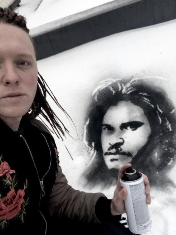 Au lieu de faire un banal bonhomme de neige, cet artiste a préféré peindre sur la neige des portraits avec de célèbres stars. Il a commencé pour cela à faire le portrait de Jon Snow, le personnage de Game of Thrones, sur la terrasse de son toit.