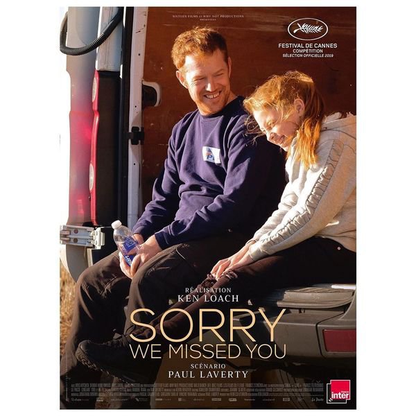 Sorry we missed you est un film dramatique franco-belge qui a été réalisé par Ken Loach.  Il s’agit de l’hitoire d’un couple qui cherche à donner à sa famille, une meilleure vie. Ricky et Abby vont ainsi chacun faire des concessions et des sacrifices pour pouvoir travailler à leur compte. Mais tout ne se passe pas comme ils le voudraient cependant. On retrouve dans la peau des personnages principaux :  Kris Hitchen, Debbie Honeywood, Rhys Stone.