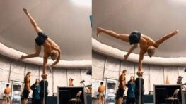 Cet acrobate s’exerce avec finesse à faire une figure qui consiste à être en équilibre avec une seule main à…