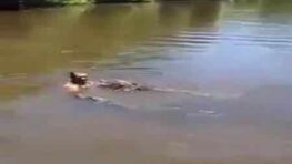 Un homme nage dans un étang avec un couple d’alligators, joue avec eux comme s’ils étaient son animal de compagnie….