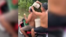 Deux hommes profitent d’une balade en moto pour… prendre un bain