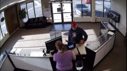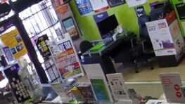 Un voleur très maladroit fait tomber son arme à feu lorsqu’il s’approche pour braquer ce commerce de e-cigarette… Double boulet…