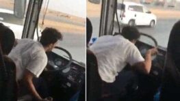 Cet homme a une attitude bizarre alors qu’il est en train de conduire un bus. Ce qui n’est pas du…
