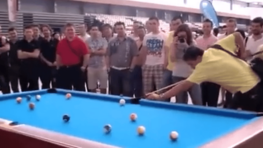 Un homme du public surprend tous ceux qui sont présents autour d’une table de billard, lorsqu’on lui demande de relever…
