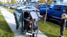 Cet homme a déniché le meilleur costume amusant et créatif. Il se balade fièrement dans la rue avec sa création…