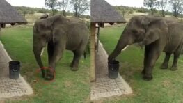 Cet éléphant a été filmé par une caméra de surveillance, passant calmement près d’une maison. Il s’est soudainement arrêté et…